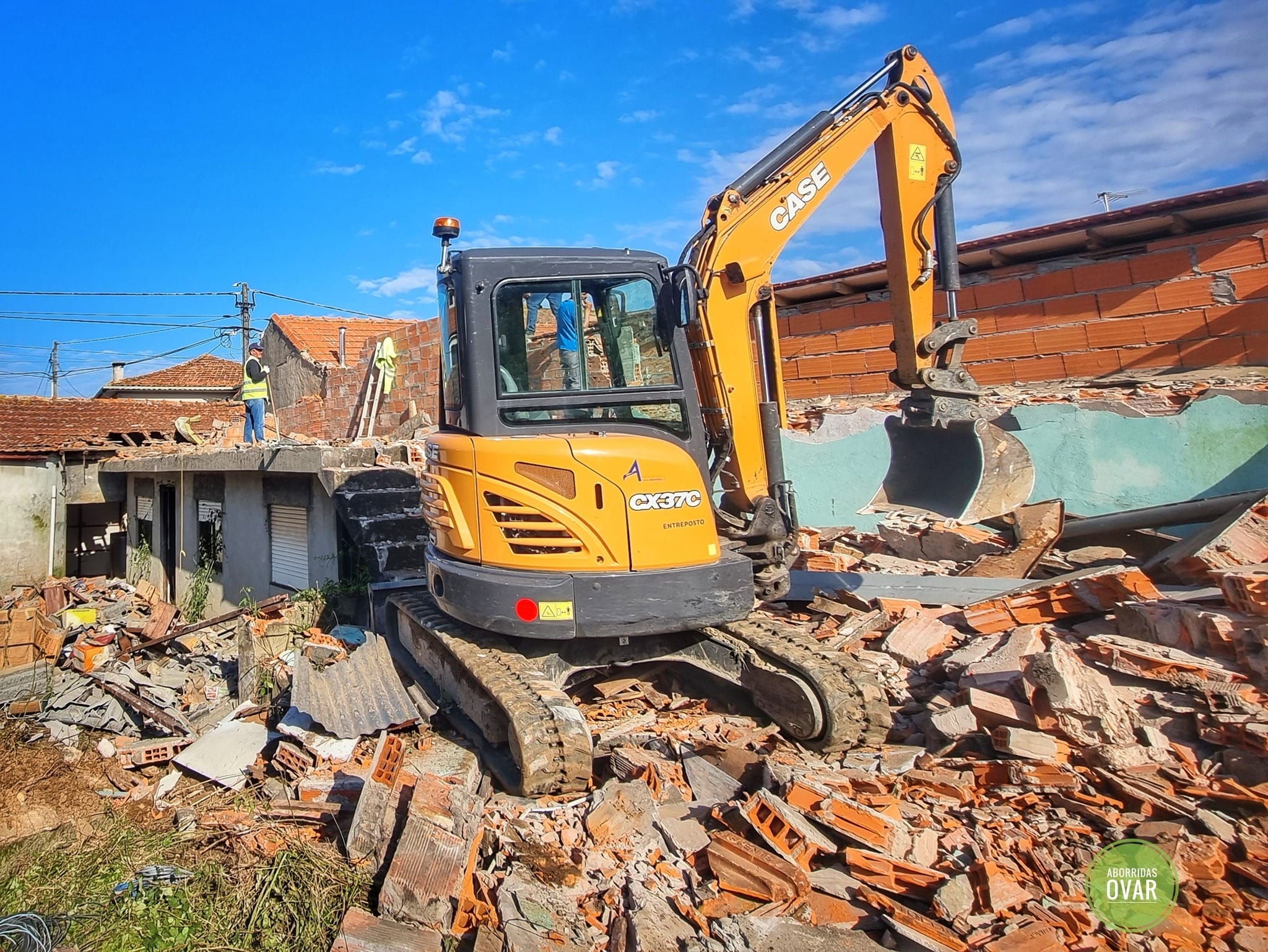 Empreitada Ligação da Rua de Cortegacinhas ao Centro Cívico de Cortegaça - Ovar, obra na fase inicial onde as demolições são o ponto em destaque